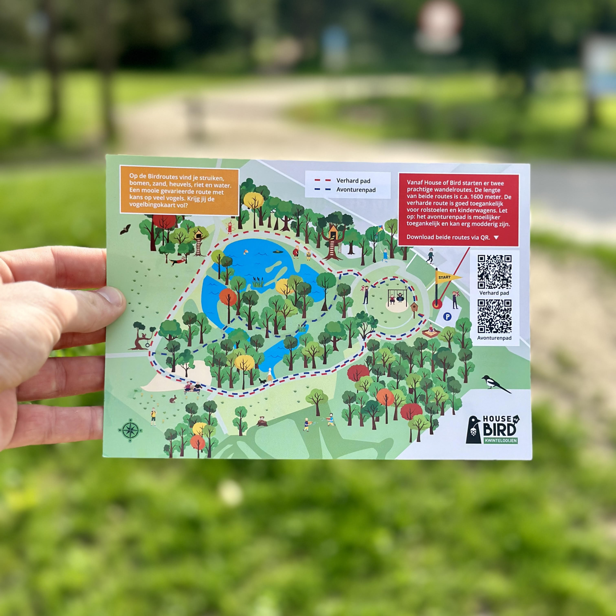 Let op: de verharde route is goed toegankelijk voor kinderwagens, het avonturenpad kan erg modderig en uitdagend zijn.
