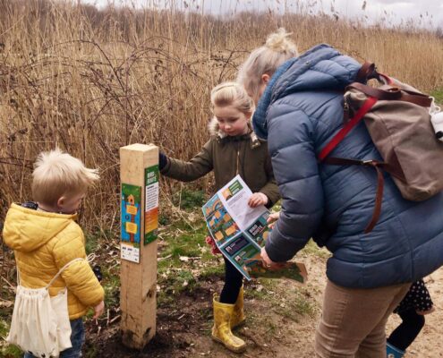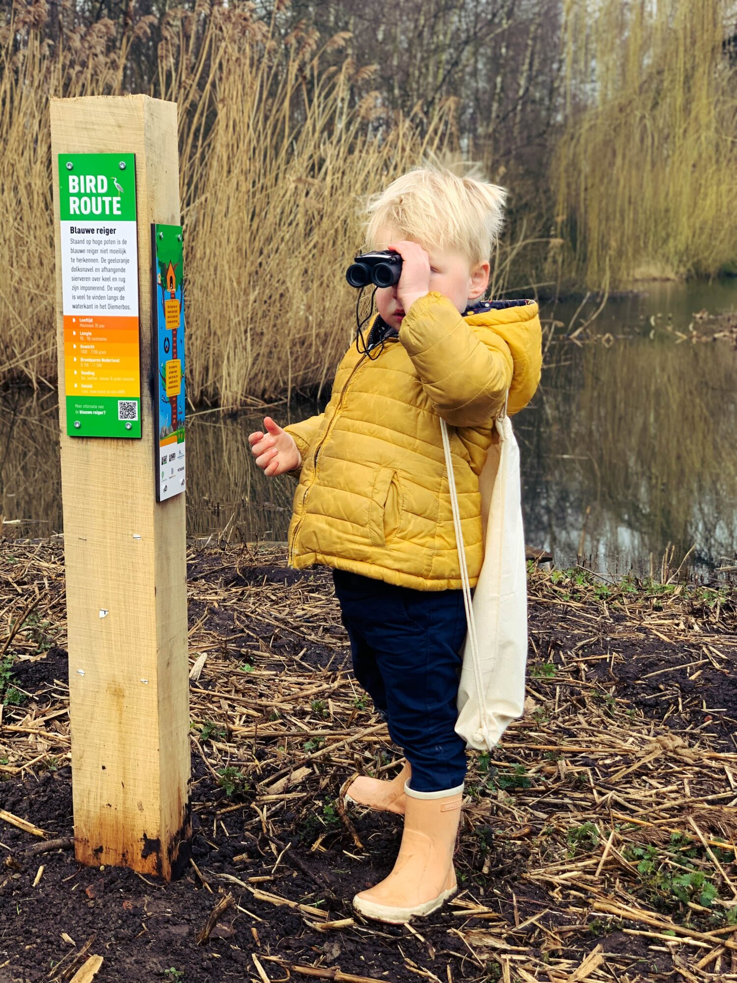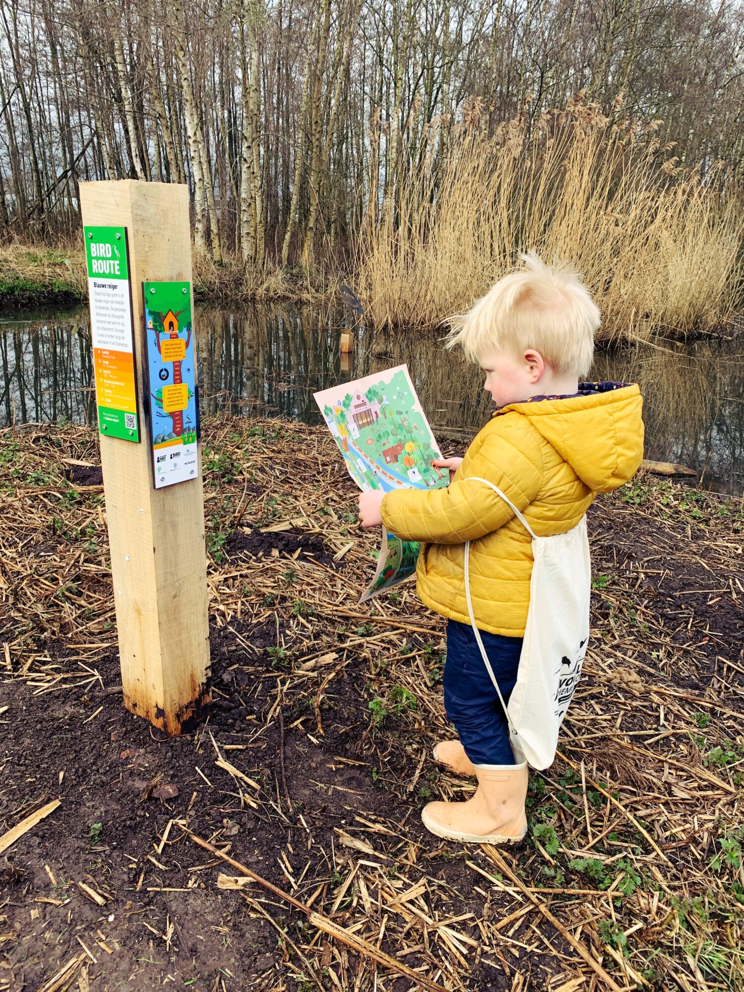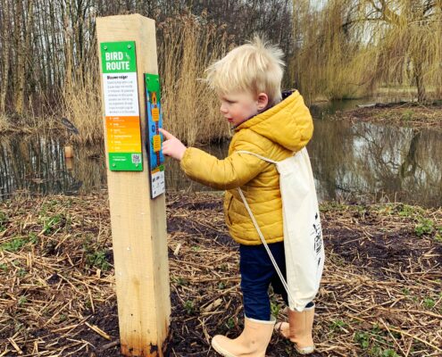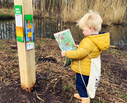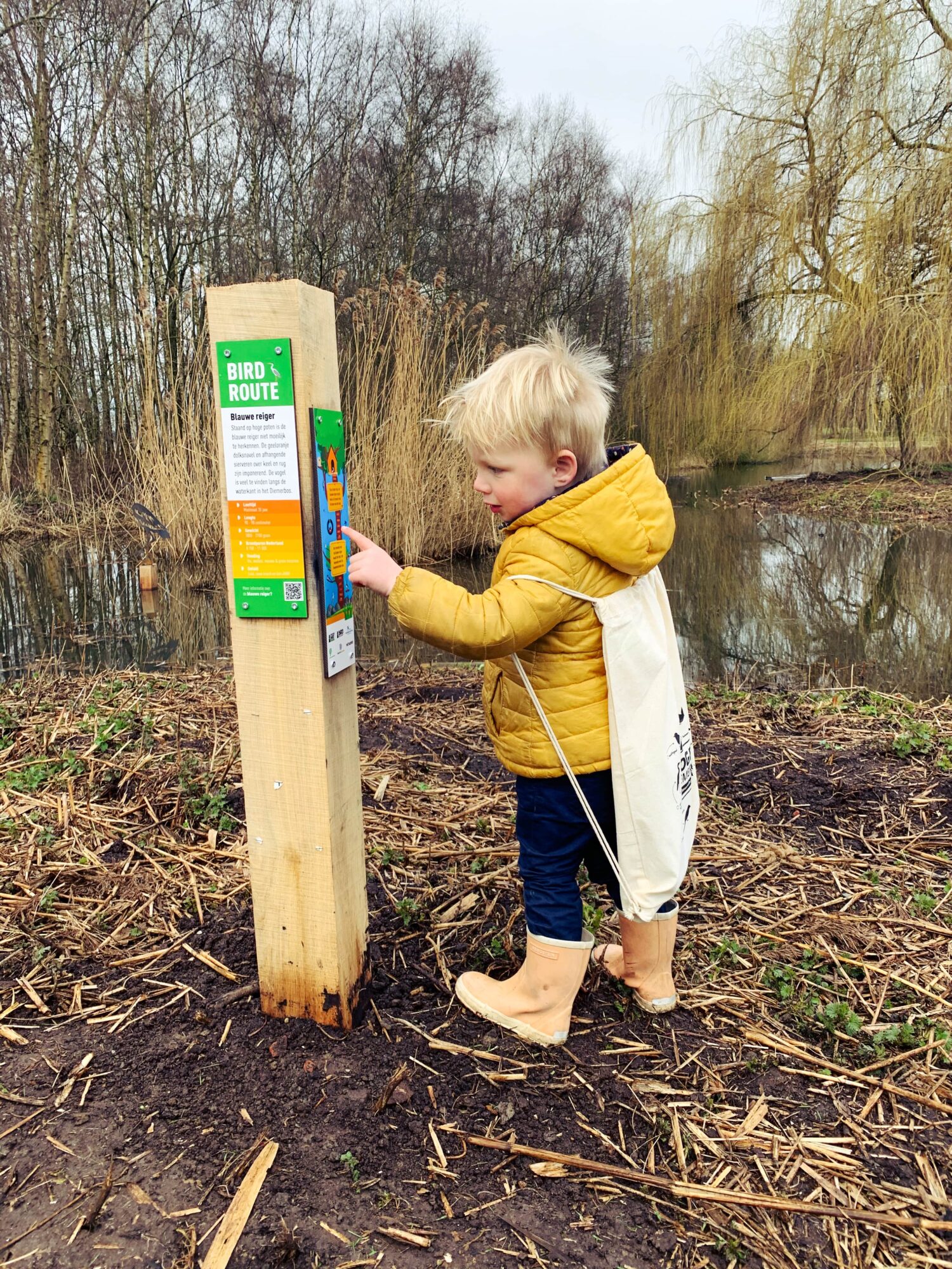 Op de Birdroute vind je struiken, bomen, riet en water. Elke vogel heeft z’n favoriete plek. Een grote bonte specht is vaak in een boom te vinden, terwijl de ijsvogel meestal vanaf een tak boven het water zit te loeren op visjes. Nét boven de grond, vaak in de struiken heb je goede kans om winterkoning of roodborst te vinden. Om het wat makkelijker te maken hebben wij ook 10 metalen vogels verstopt langs deze route. Ze zijn te zien vanaf de paaltjes. Kun jij ze vinden?
